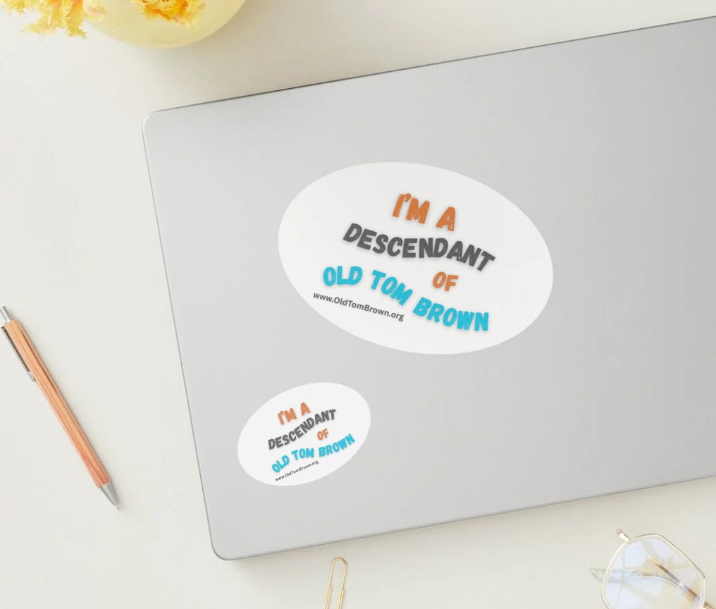 - Stickers – “I’m a Descendant of Old Tom Brown” (large or small)
